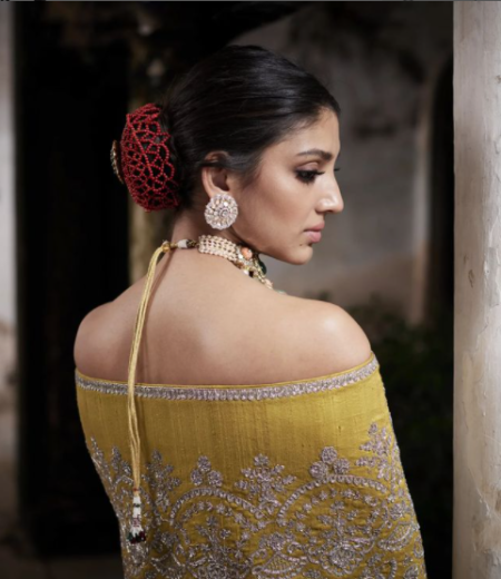 Miheeka Bajaj looks gorgeous in a mustard embroidered heavy embroidery lehenga with matching embroidery cape highlighting the skirt […]