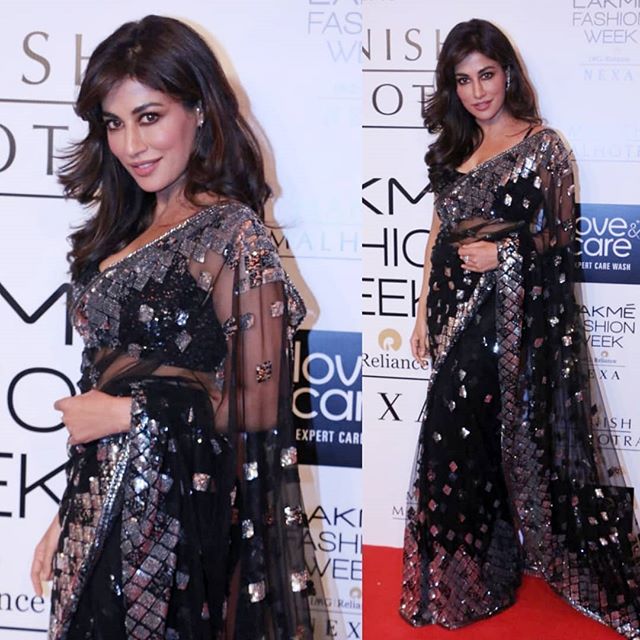 Chitranagada Singh snapped at Lakme Fashion Week 2019 in a black embroidery saree designed by Manish Malhotra,Chitranagada attend Manish Malhotra at Lakme Fashion Week 2019.