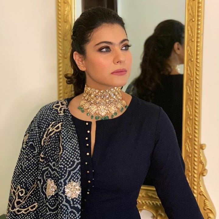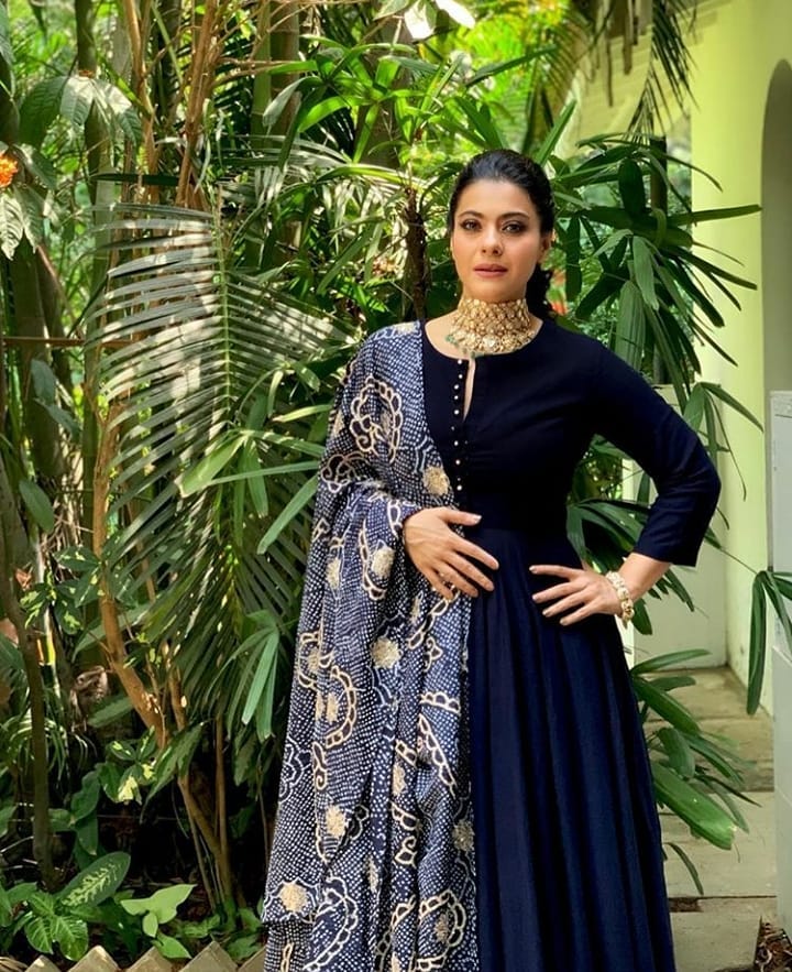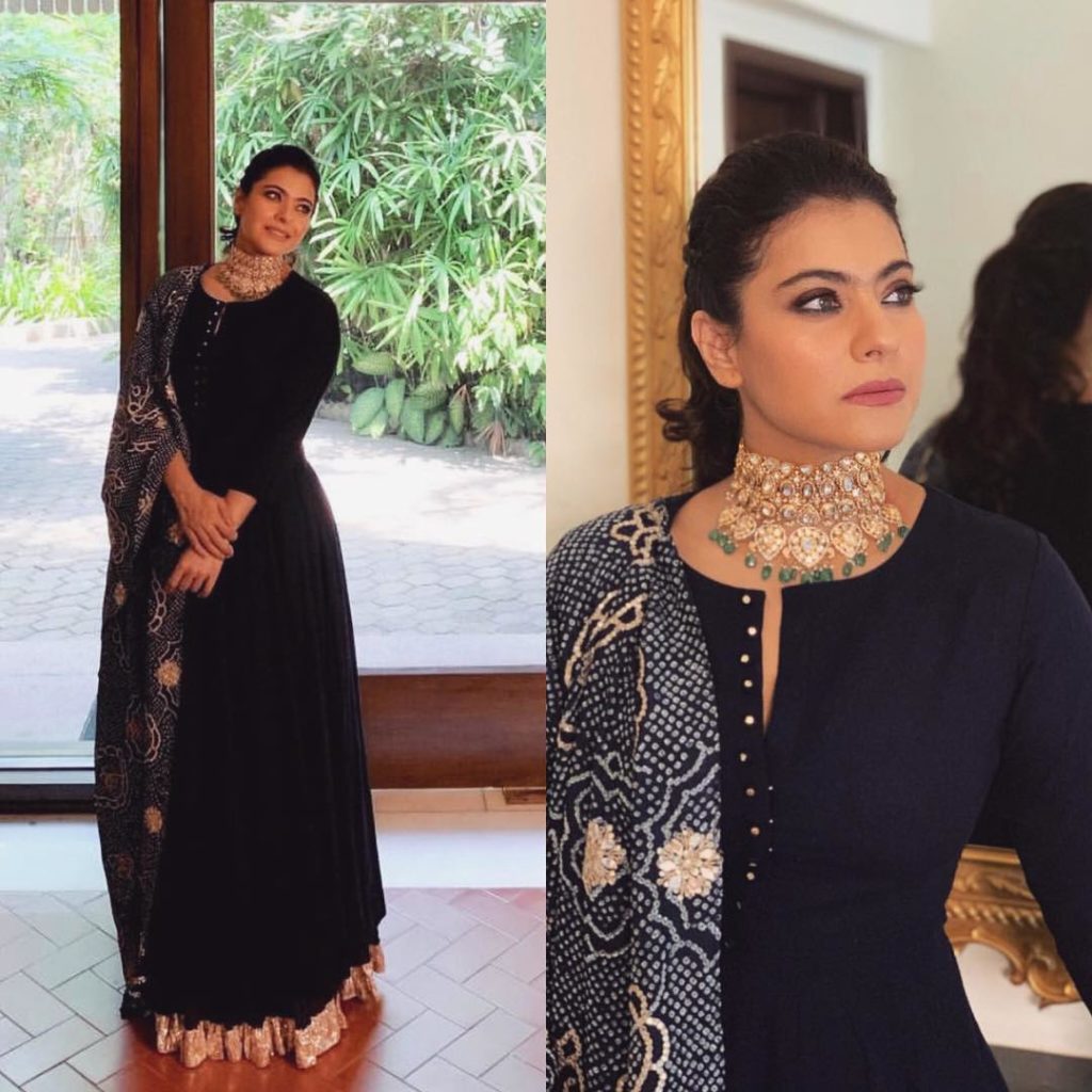 For Joy Alukkas store launch event in Bangalore Kajol was seen in a black full sleeves full length anarkali suit paired with heavy embroidery dupatta ,she finished off her look with polki choker from Joy Alukkas .